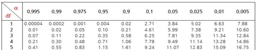 자유도(df) = (2 − 1) (2 − 1) = 1