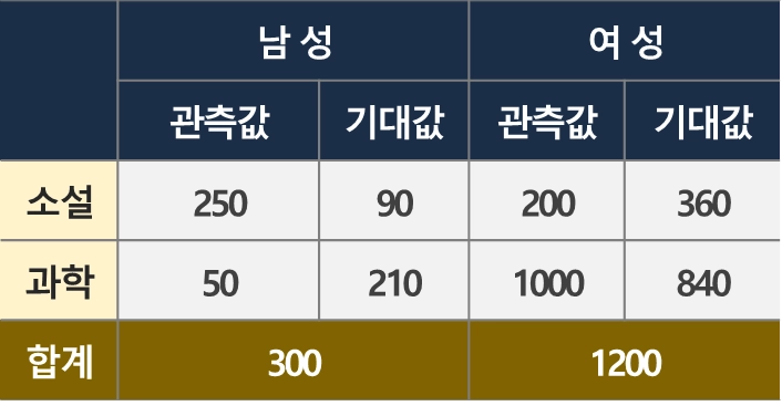 사례 : 성별과 선호하는 독서 분야의 상관관계