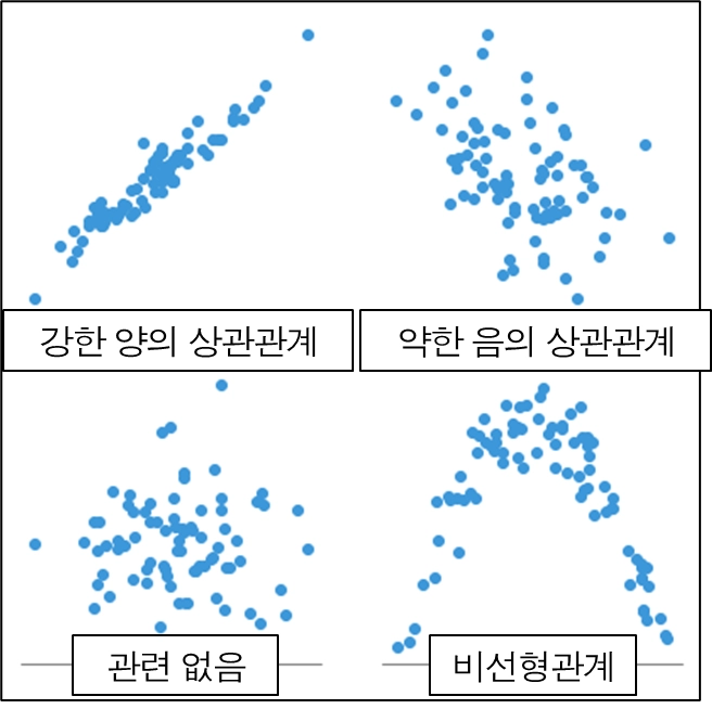 비선형 상관관계는 나타내지 못함