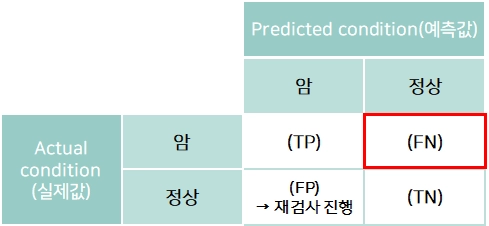 예: 암 판단 모델(암: Positive, 정상: Negative)