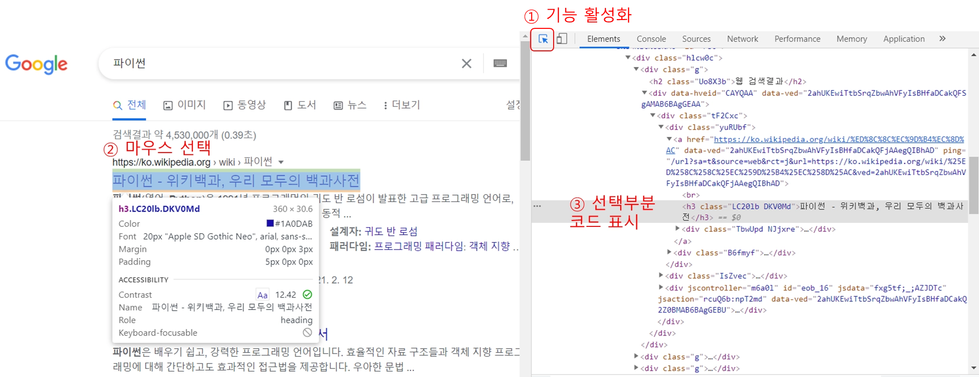 ๋ง์ฐ์ค ์ฐํด๋ฆญ > Copy > Copy element ๋๋ Copy Selector ๋ฑ ์ํฉ์ ๋ฐ๋ผ ์ ์ ํ๊ฒ ์ฌ์ฉ