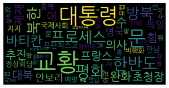 텍스트에 등장하는 단어를 그 등장 빈도에 따라 서로 크기가 다르게 구름형태로 표현