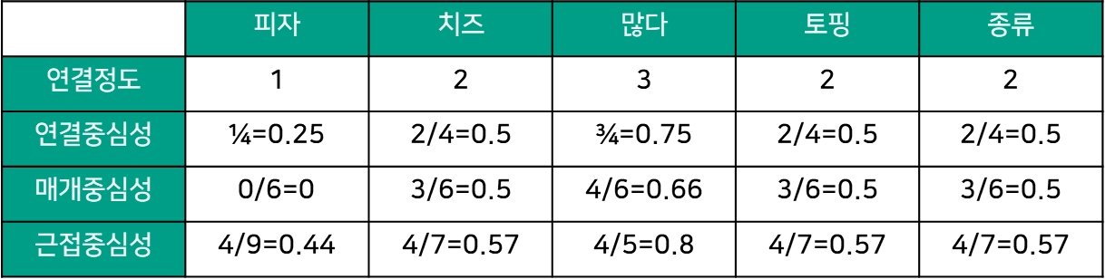 ‘피자’의 근접 중심성