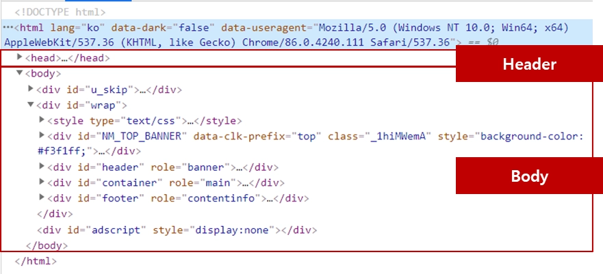 ์์์ค, ํค๋(Header), ๋ณธ๋ฌธ(Body)์ผ๋ก ์ด๋ฃจ์ด์ง