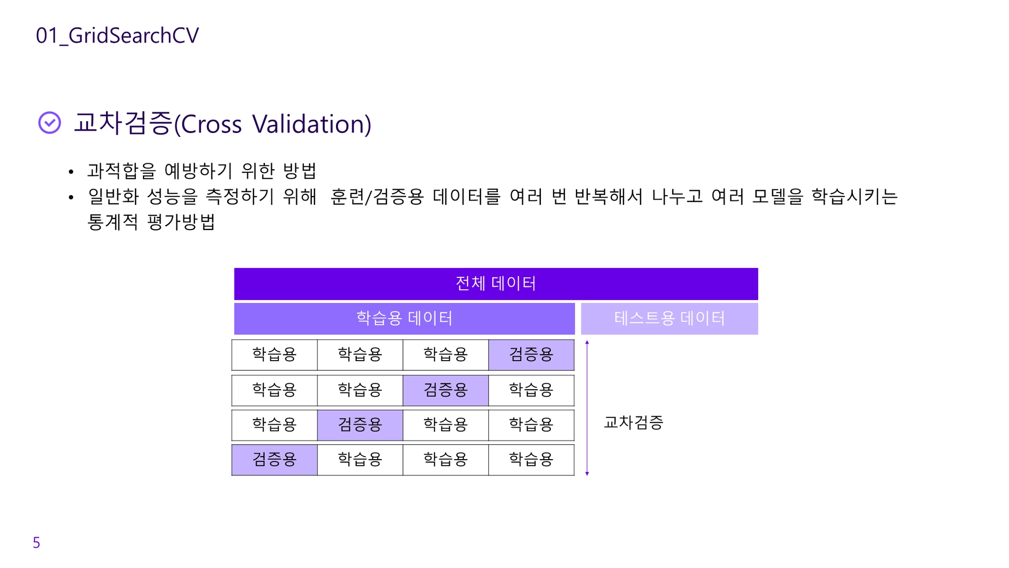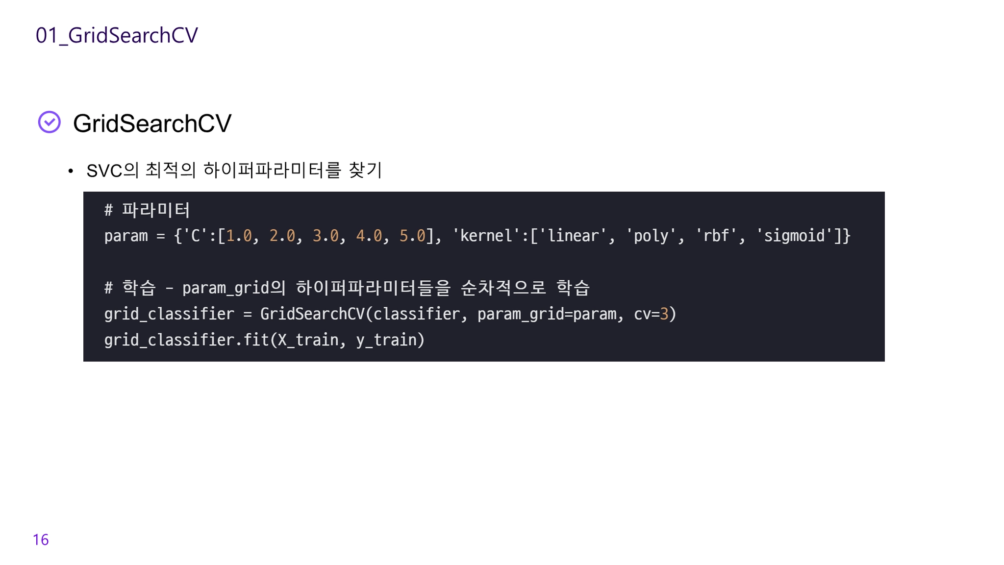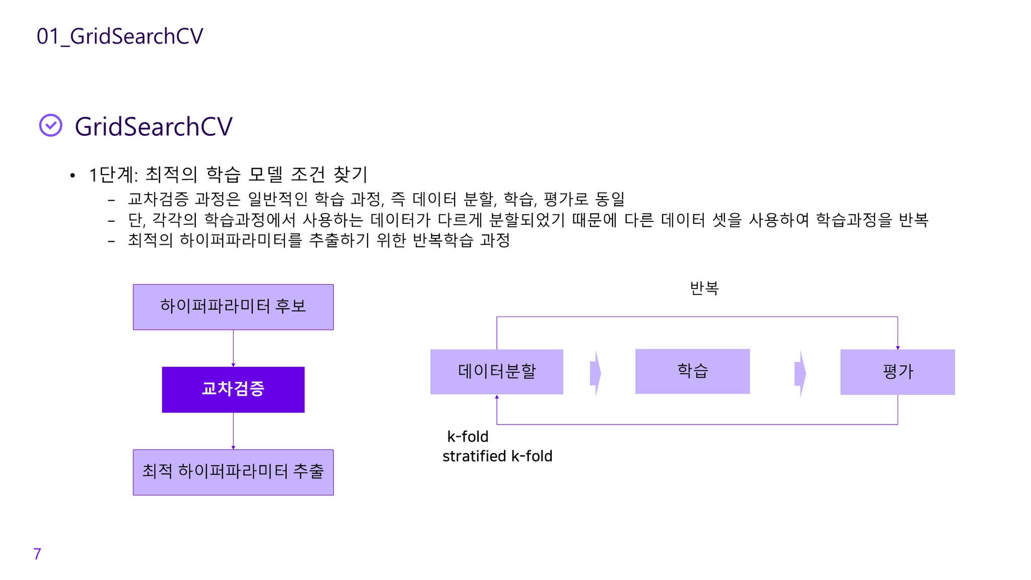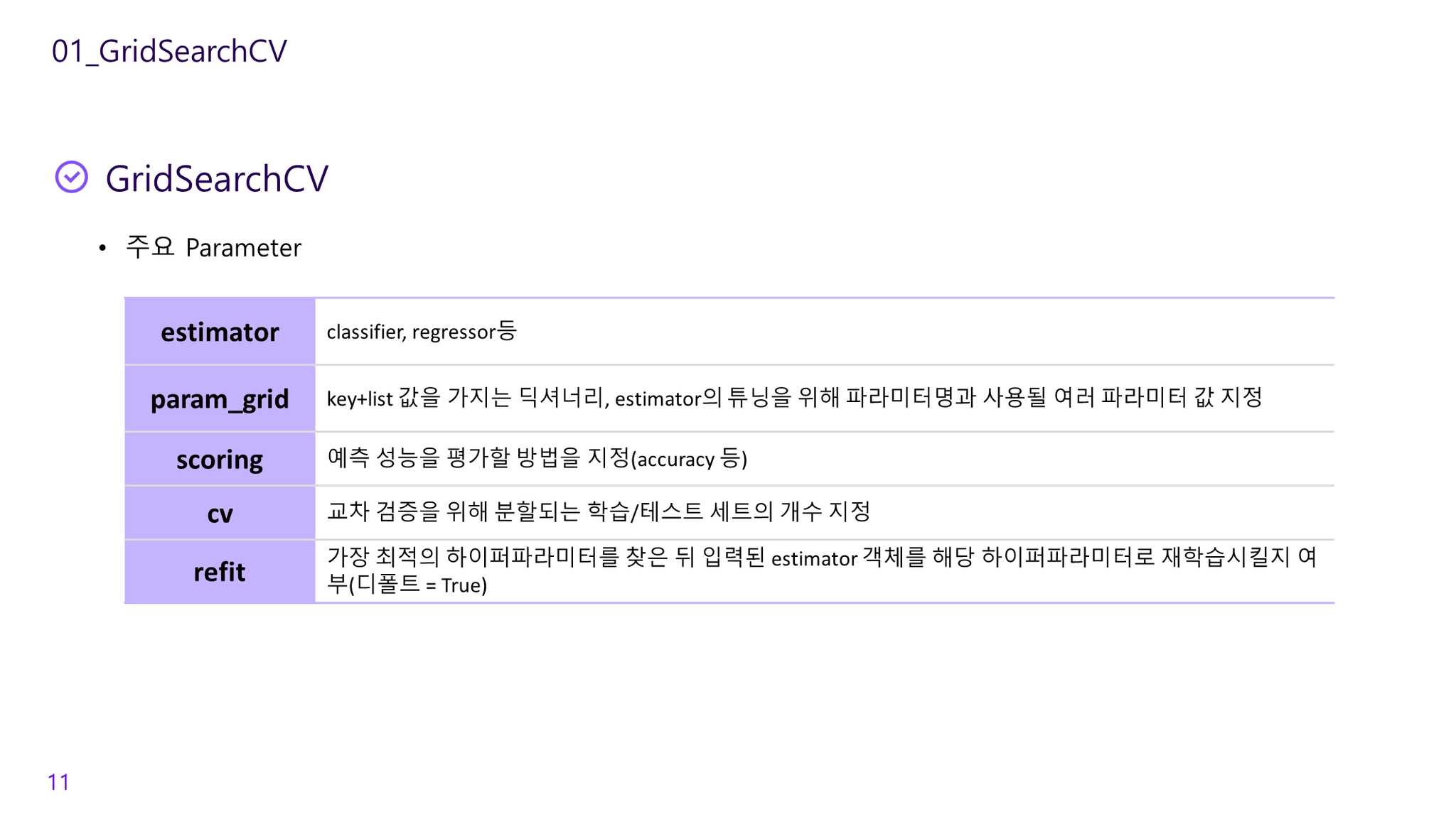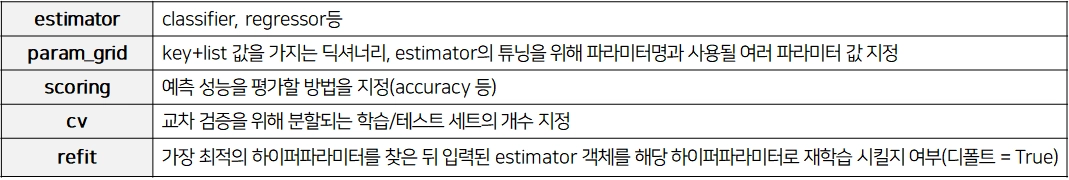 교차검증을 기반으로 하이퍼파라미터의 최적값을 찾아줌