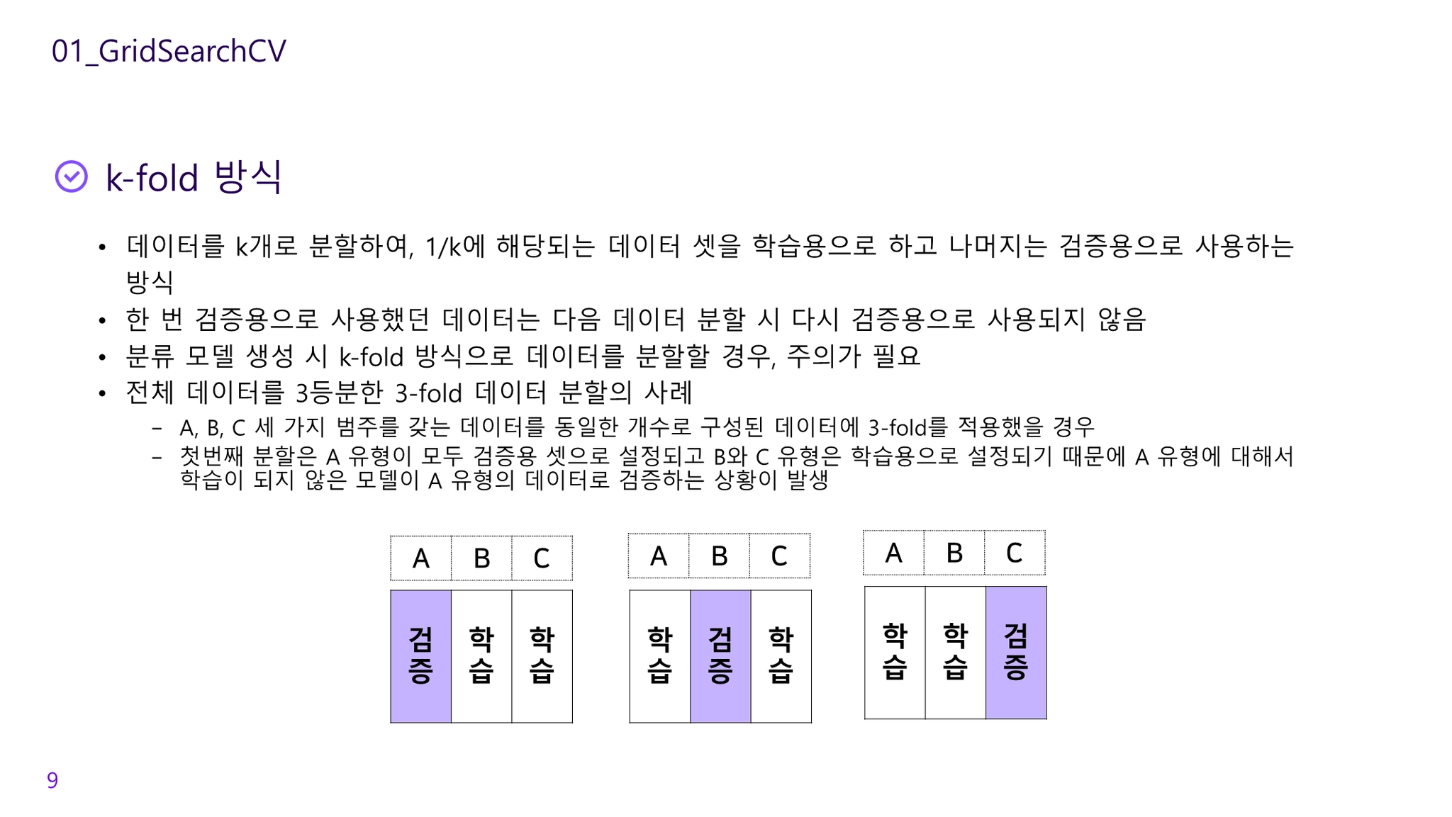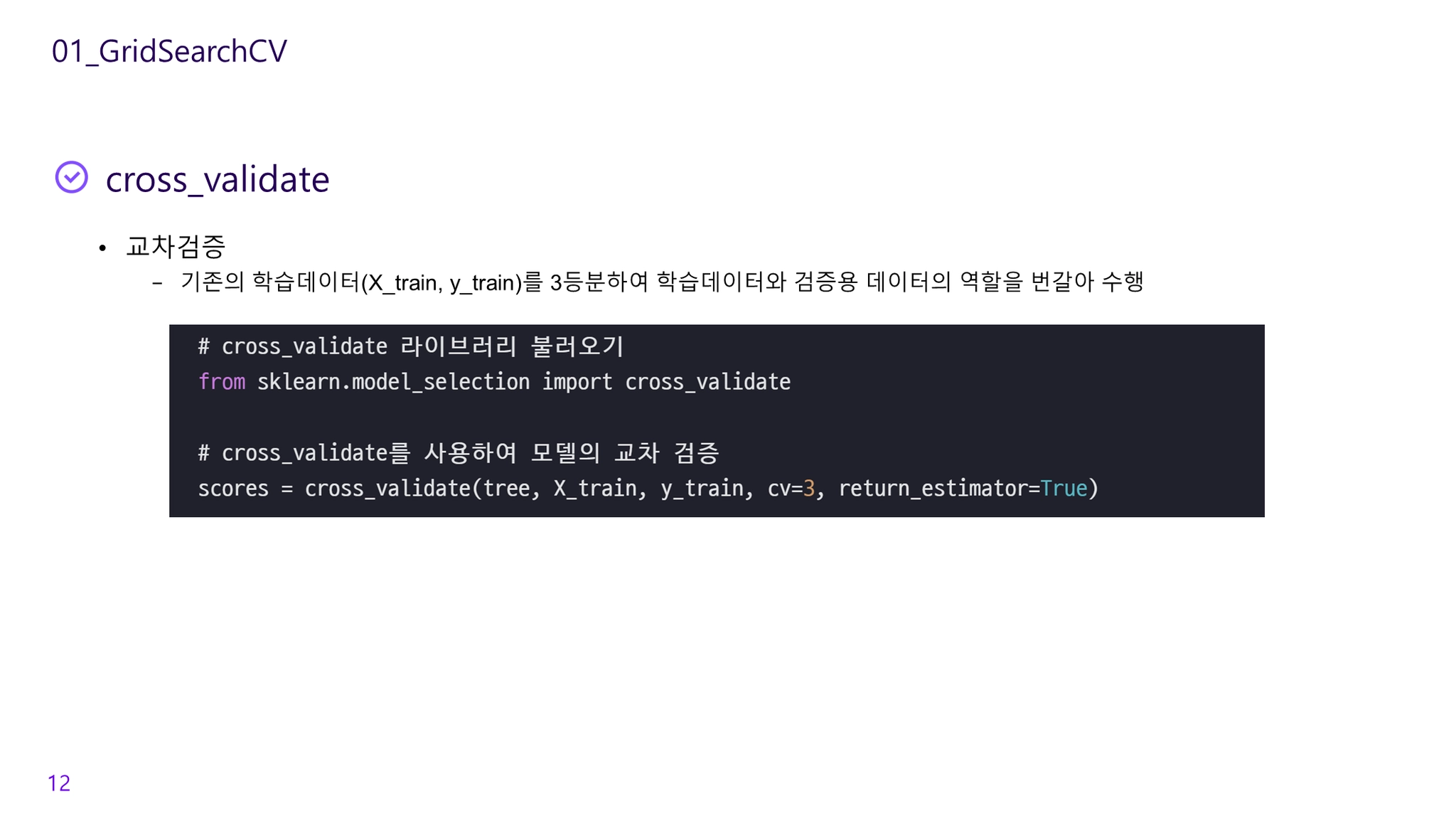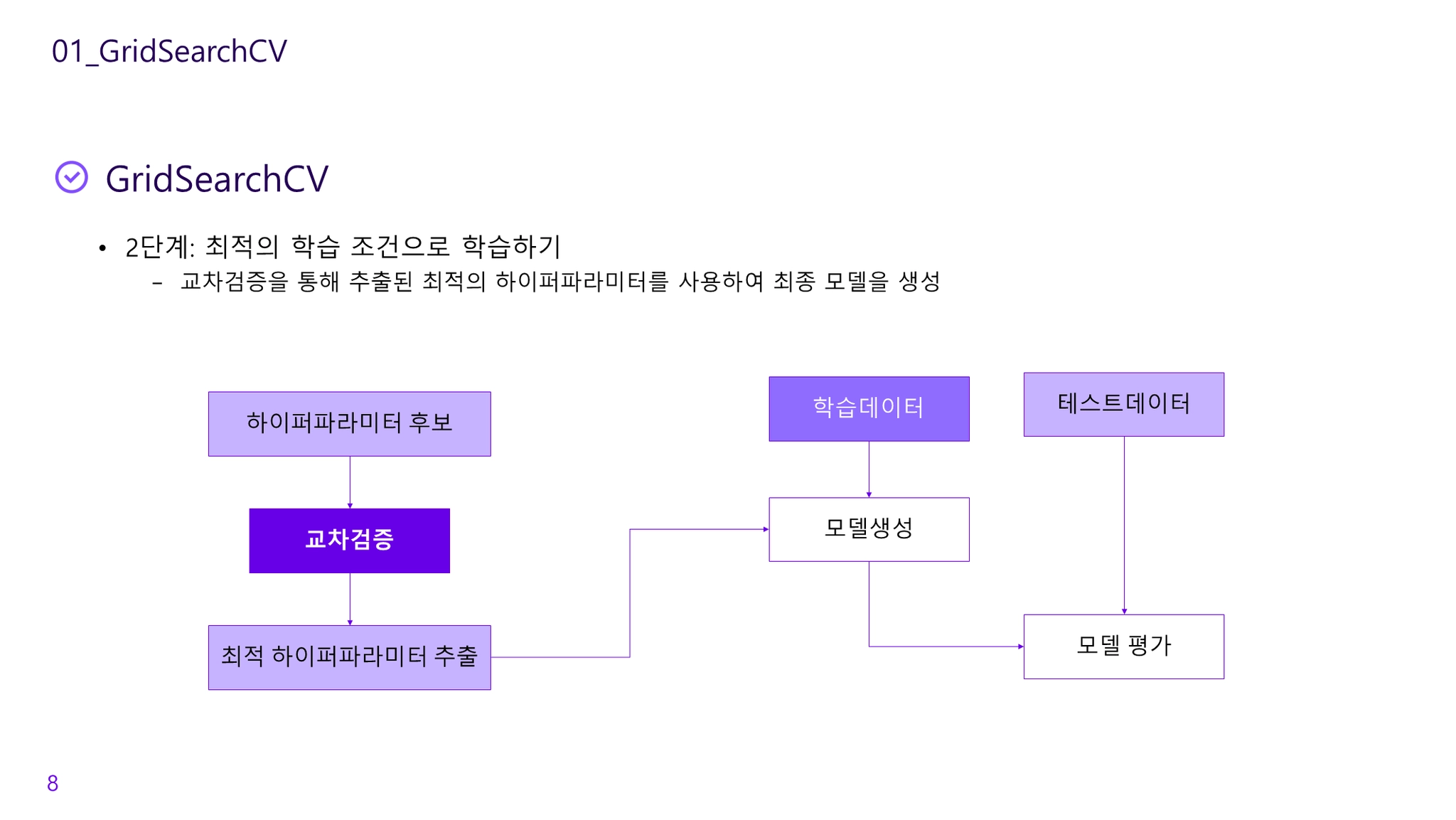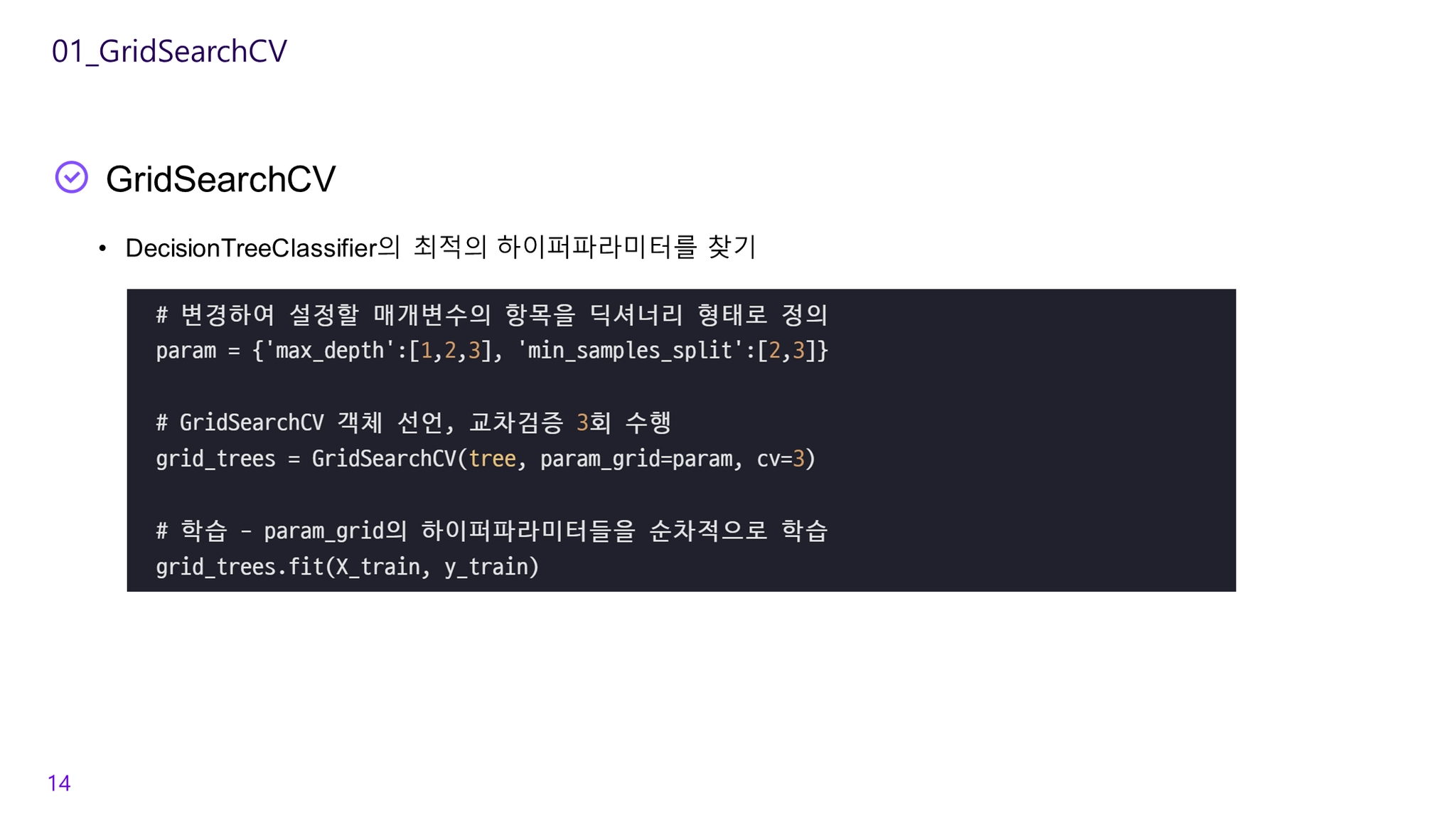 교차검증을 기반으로 하이퍼파라미터의 최적값을 찾아줌