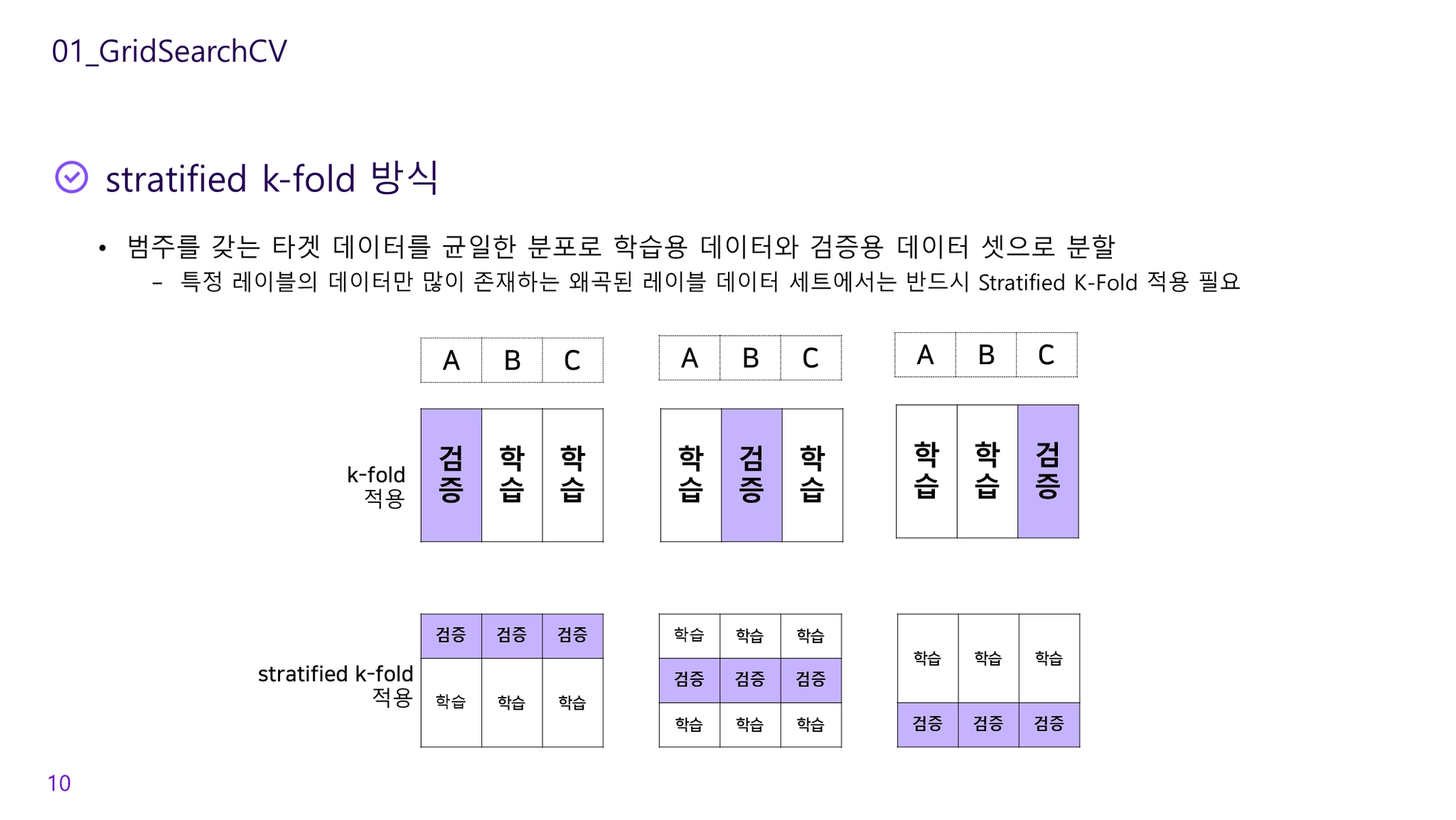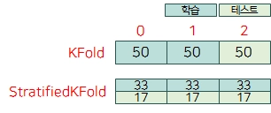 왜곡된 레이블 데이터 세트에서는 반드시 StratifiedKFold를 사용해야함