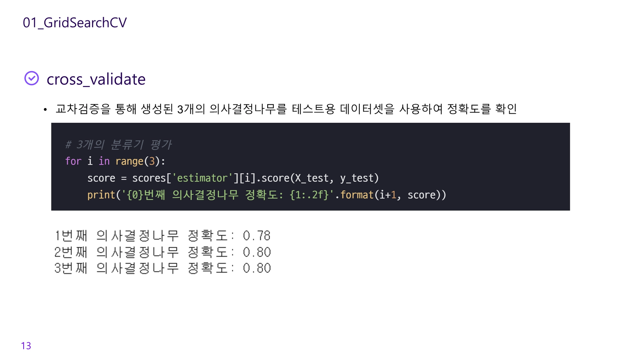 # 가장 좋은 파라미터 설정으로 재 학습(refit=True)