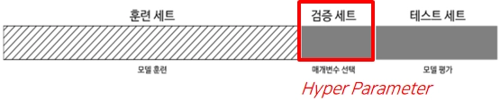 [주의] 테스트세트를 사용하여 매개변수 범위 테스트를 해서는 안됨. 테스트세트를 사용한 평가는 모델이 결정되고 마지막에 딱 한 번 수행해야함