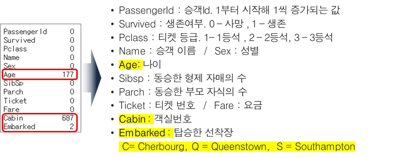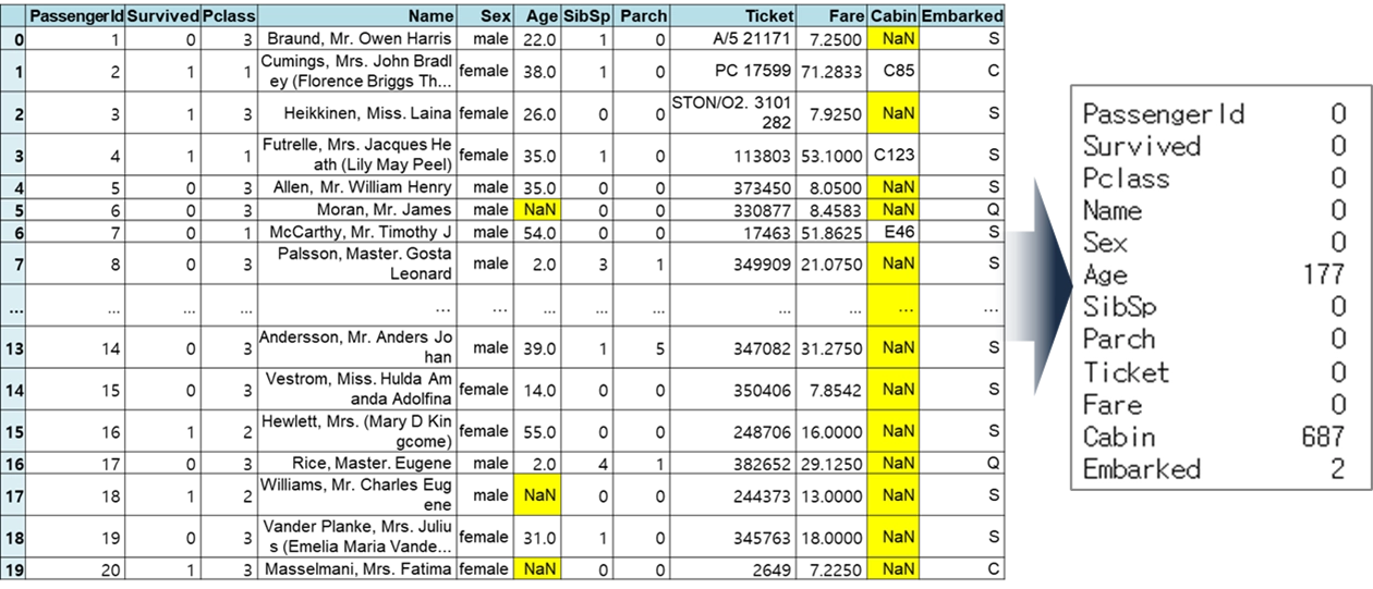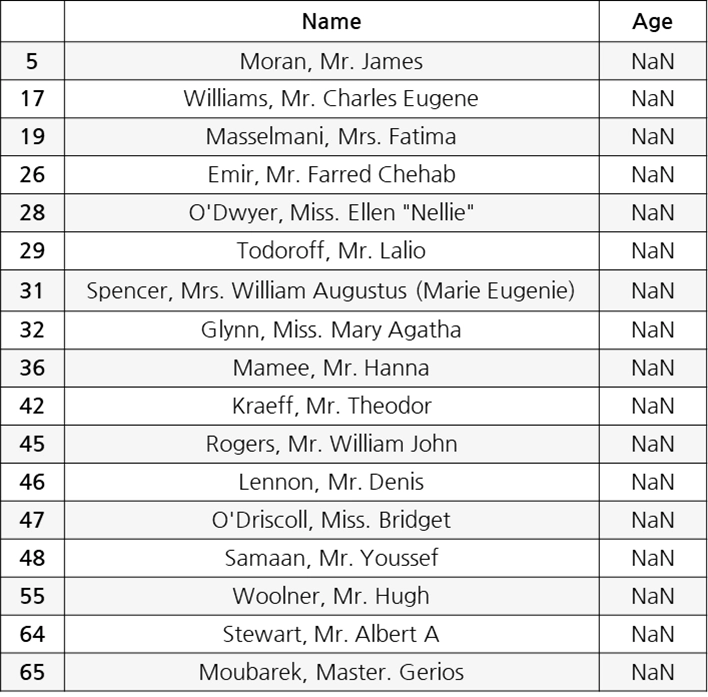 Age 컬럼의 경우, Name 컬럼을 참조하여 유추하여 누락된 값을 채우는 방법 고려 가능