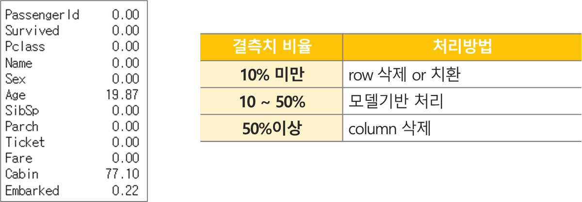 결측치 비율에 따라 처리 방법을 달리함